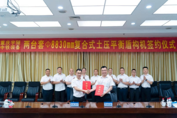 6月23日,中鐵裝備集團(tuán)與重慶智邦集團(tuán)——重慶宇隧交通設(shè)備有限公司在鄭州舉行兩臺(tái)φ8.83米復(fù)合式土壓平衡盾構(gòu)機(jī)采購簽約儀式。
